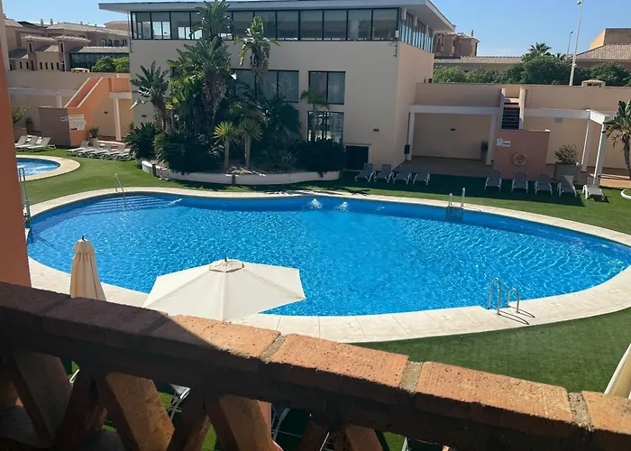 Apartamento Punta Umbria Parking Incluido Y Piscina is situated in Punta Umbria, 5 minutes' walk from C.C. Punta Almenara, and offers spa amenities such as a Jacuzzi and a sauna. This apartment includes a terrace that overlooks the pool and features a swimming pool.